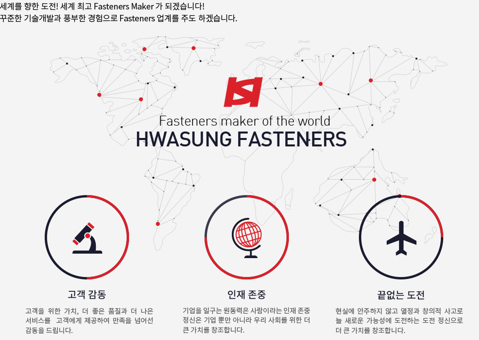 • HWASUNG FASTENERS MISSION : 화목, 신뢰, 성실