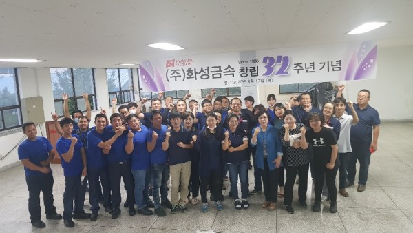 아쉽게도 COVID 19로 인하여 창립 32주년 기념식을 사내 강당에서 치렀습니다.